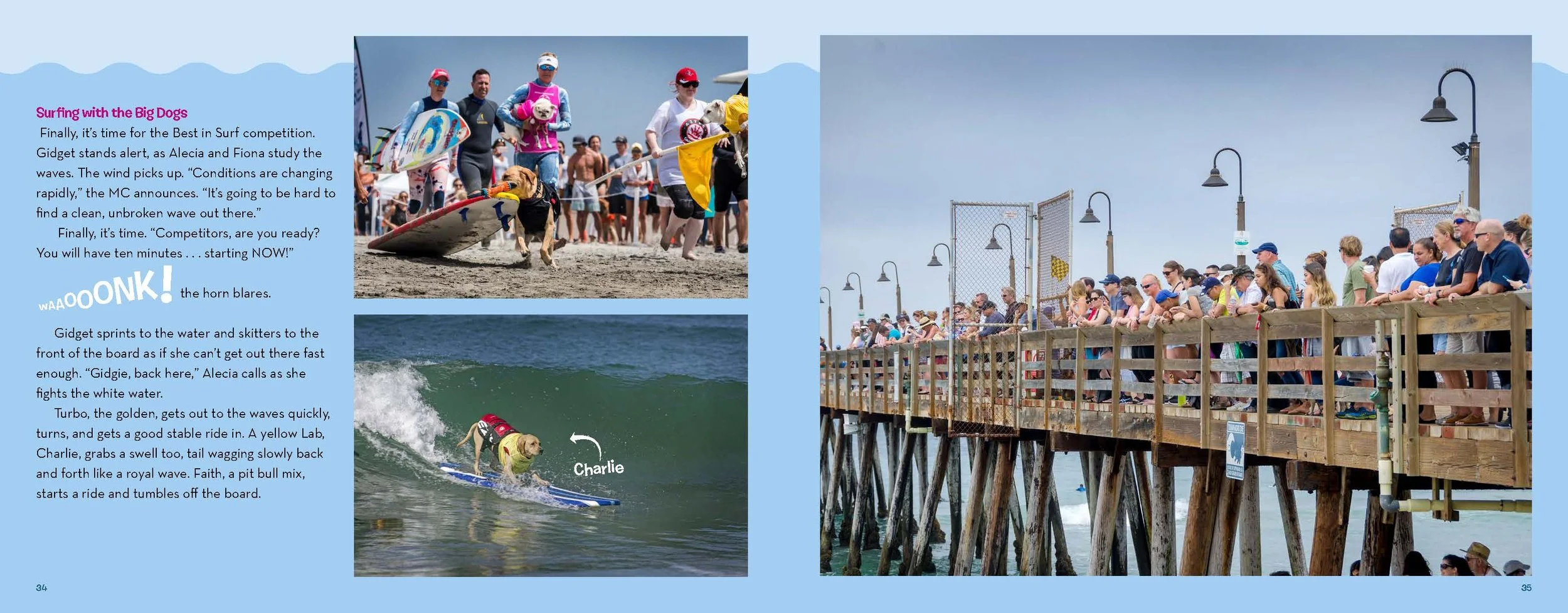 For this photo-driven nonfiction picture book from Little Bigfoot, I served as photo editor and visuals project manager, shaping thousands of images from five photographers into a clear, energetic story about a surfing pug. I also built a full InDesign book dummy for the publisher, which guided the final layout and reduced workload for both the author and designer.